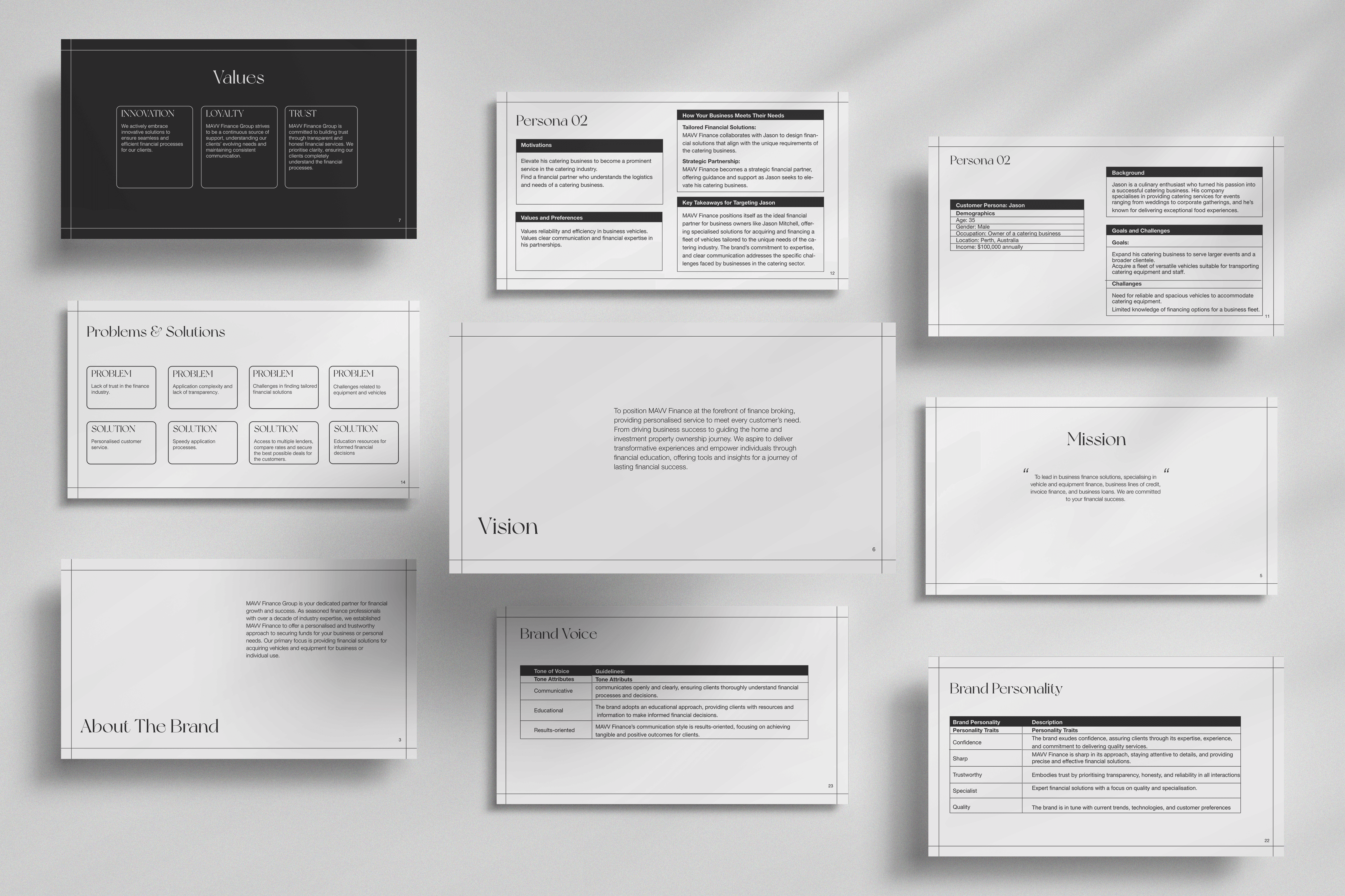 Although highly experienced, MAVV’s brand lacked the clarity and polish to match their reputation. Messaging was fragmented, their online presence felt generic, and the visual identity didn’t build the trust or confidence expected in finance. In a competitive space crowded with transactional brokers, MAVV needed to shift perceptions: from simply offering finance products to being seen as a strategic, reliable partner for long-term growth.