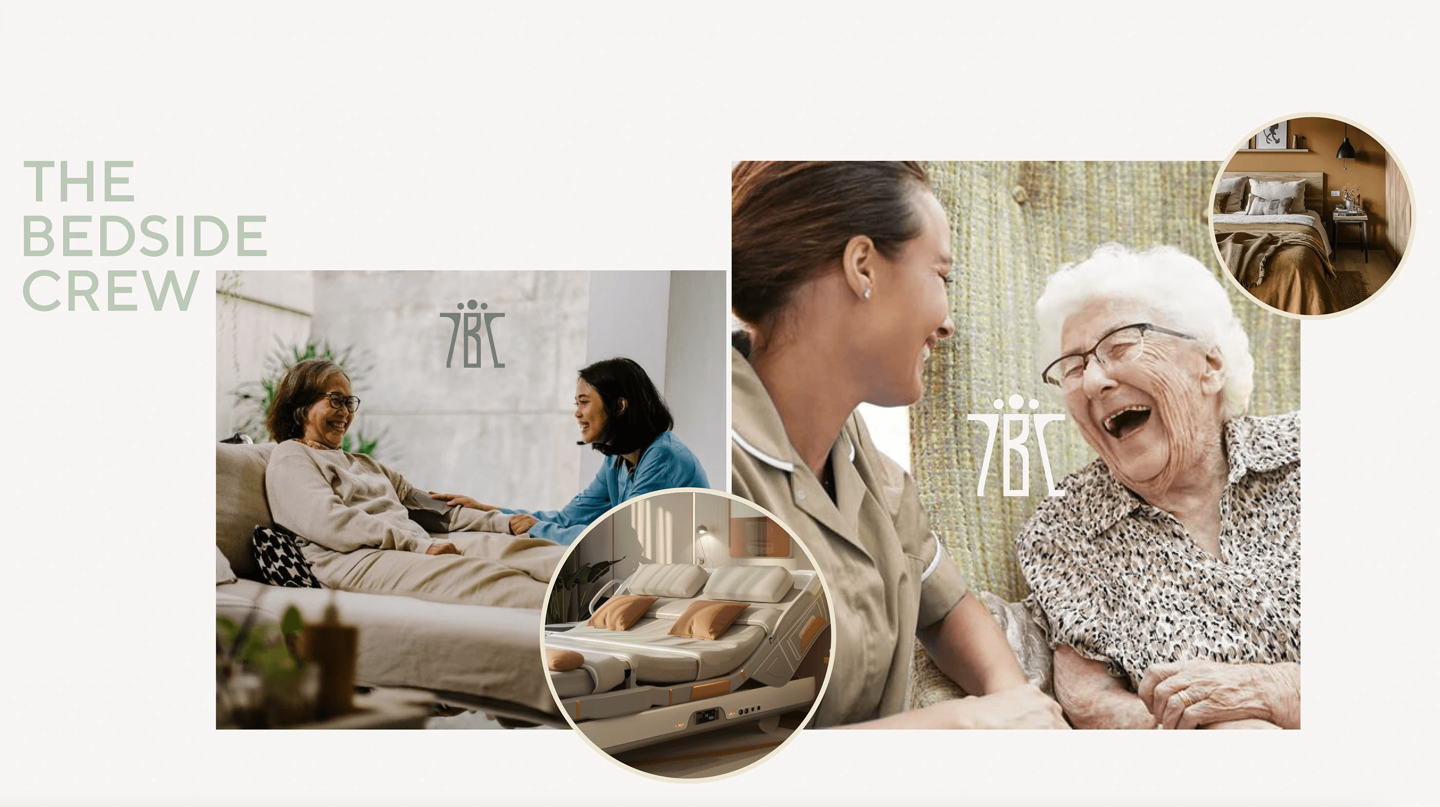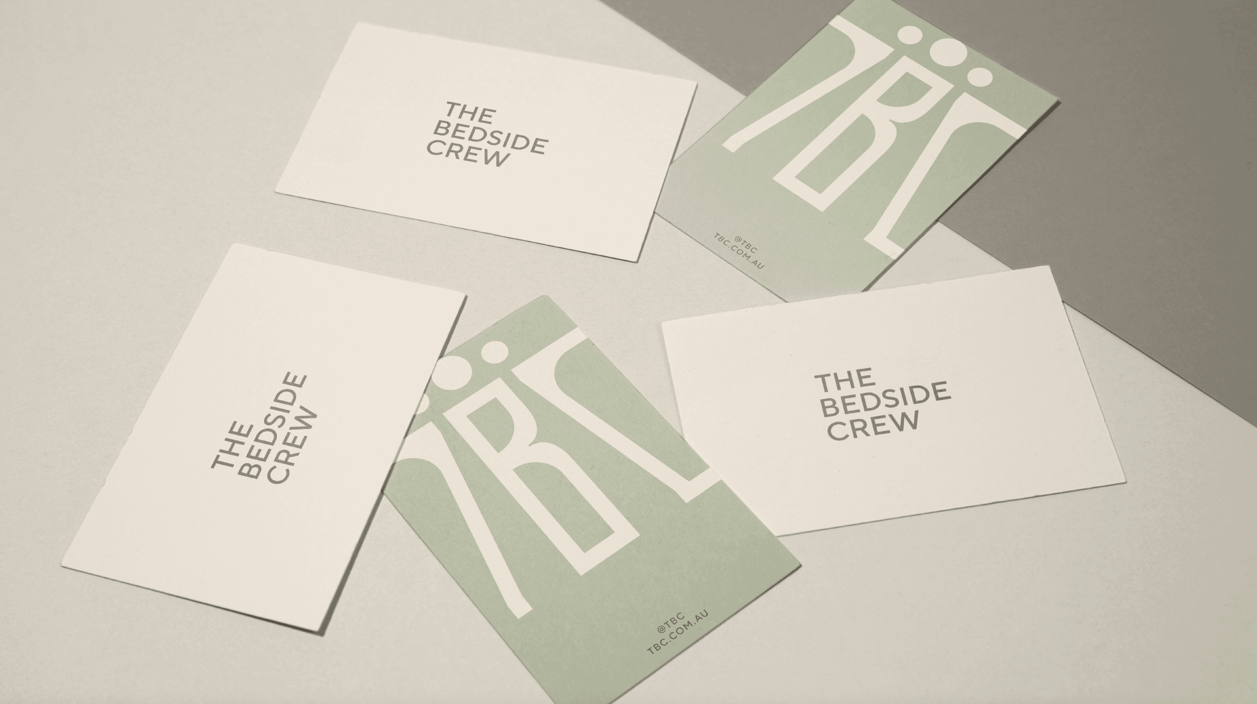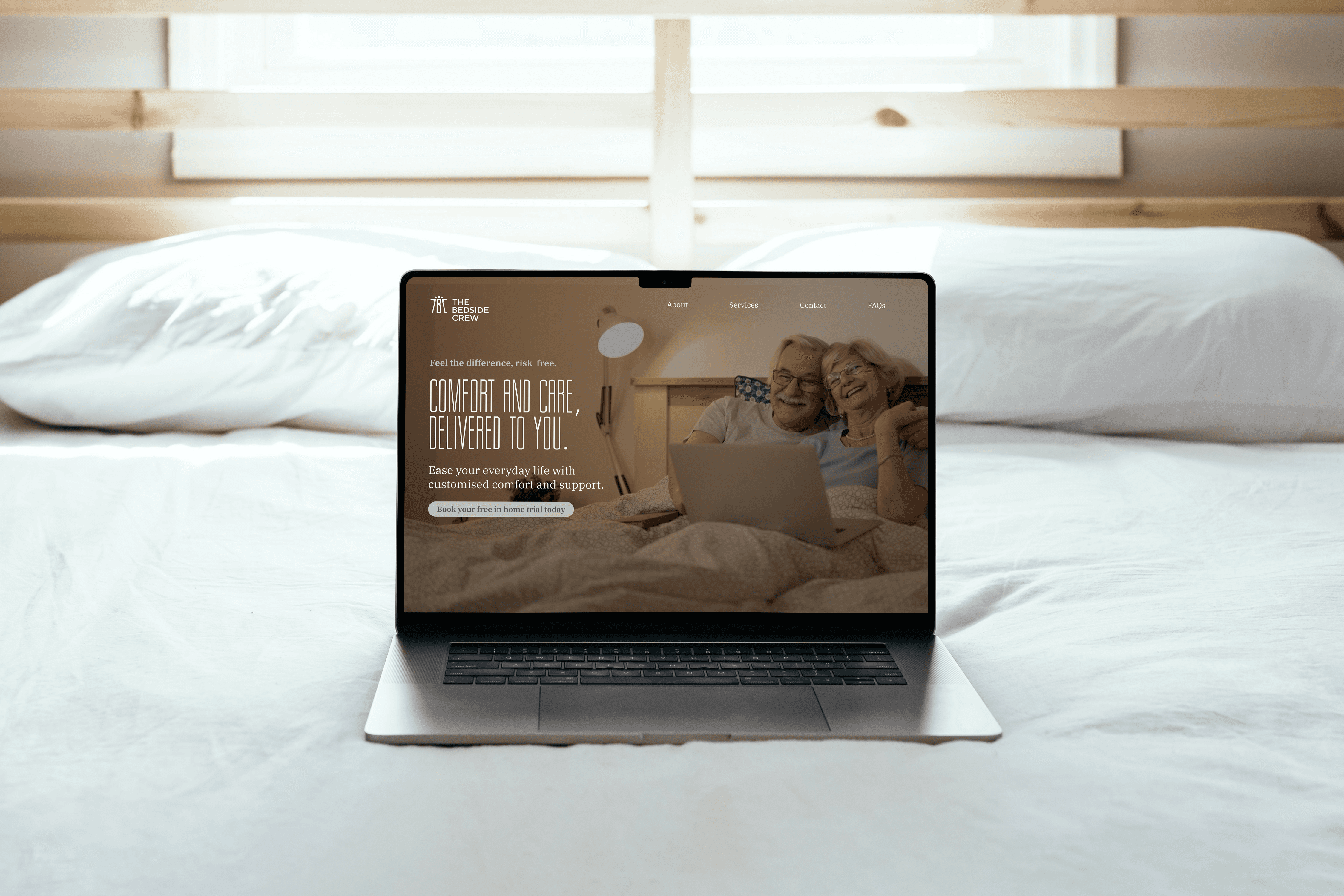 We developed a name and brand that feels human, supportive, and easy to trust. The Bedside Crew communicates care and presence from the very first touchpoint. The visual identity builds on this feeling with calming colours, soft typography, and imagery centred around real people and real moments. The result is a brand that’s not only professional and credible—but genuinely comforting and memorable.