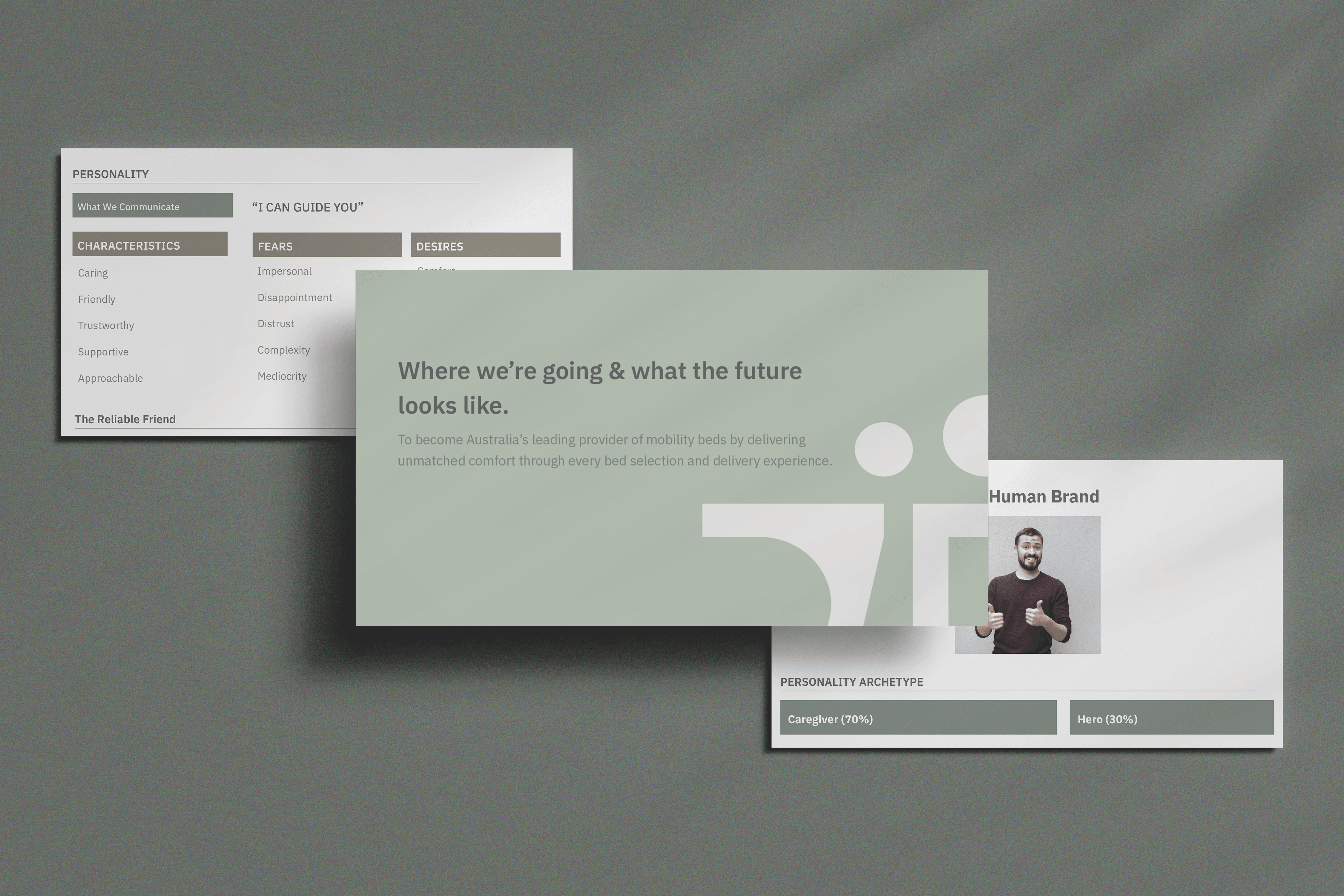 Imagery is customer-centred and authentic, emphasising calm environments and lived experiences. Photos highlight real interactions, in-home trials, and supportive moments—always reflecting the brand values of care and dignity.