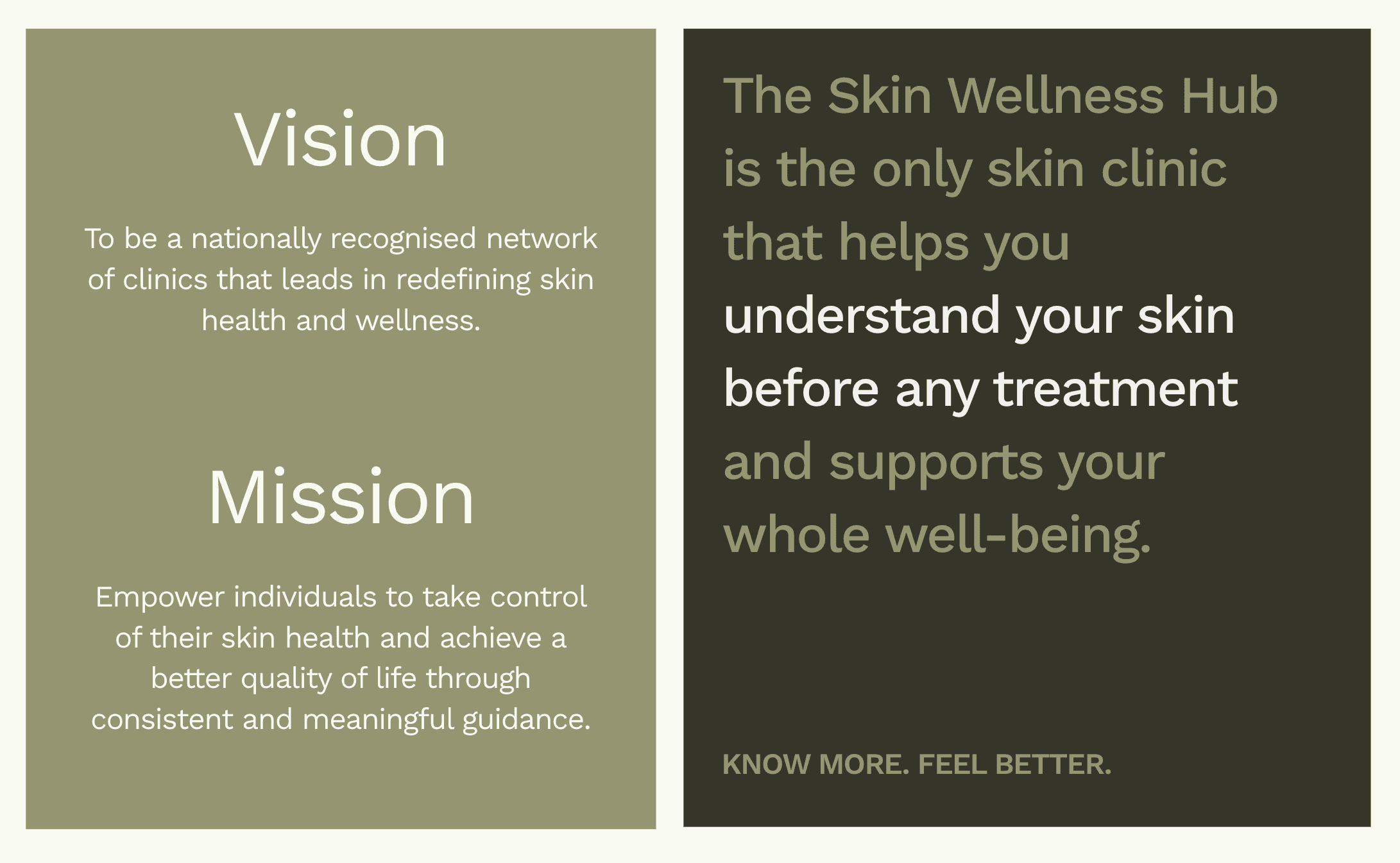 The Skin Wellness Hub is built on a vision to empower patients through expert-led education, ethical care, and premium, long-term skin health solutions. In a market flooded with misinformation, sales-driven clinics, and one-size-fits-all treatments, patients struggle to find expert care they can trust.